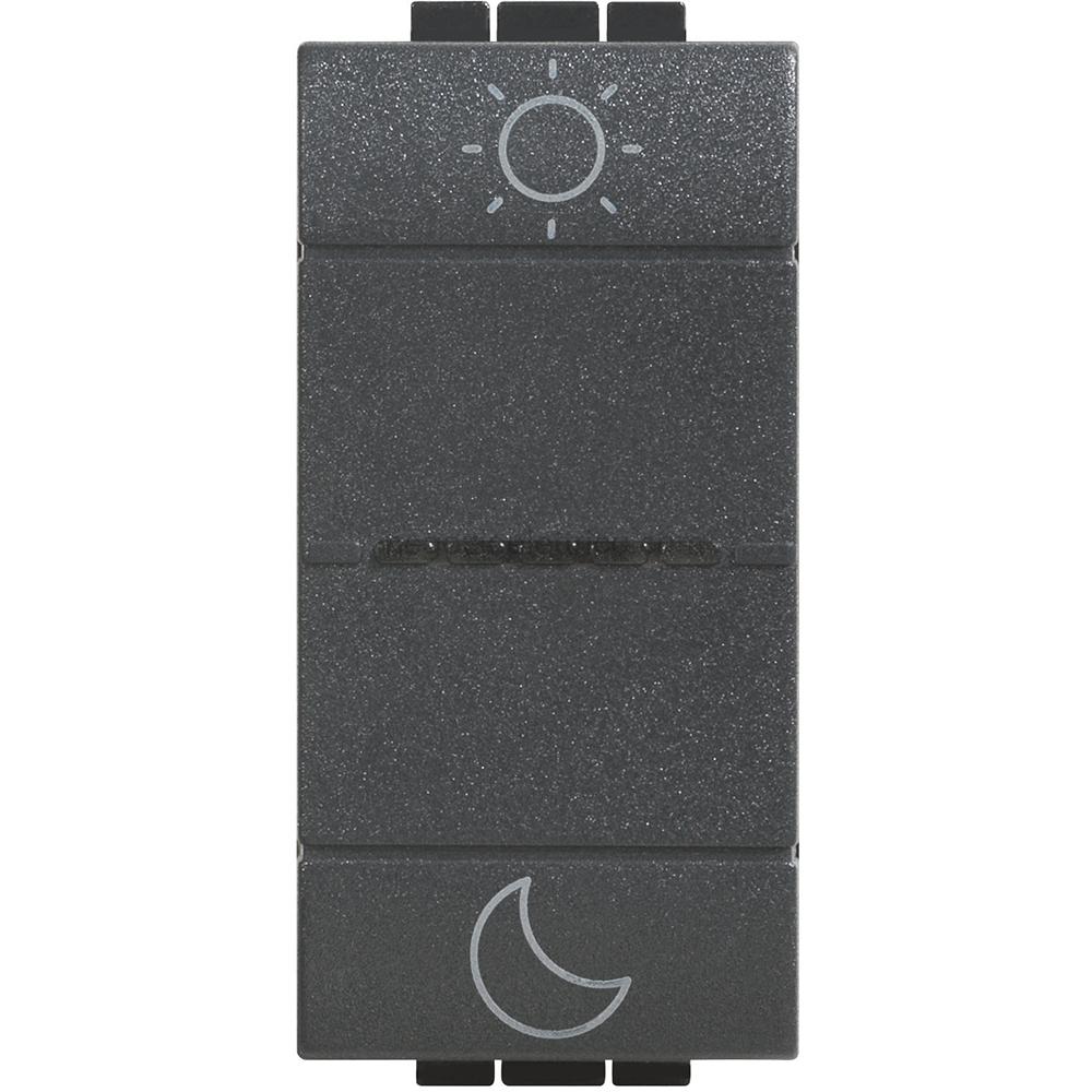 Comando scenari wireless dotato di 2 pulsanti per l’attivazione degli scenari Notte e Giorno personalizzabili dall’app Home + Control. Può essere installato in qualsiasi scatola da incasso senza alcun cablaggio. La batteria può essere sostituita senza rimuoverlo dal supporto. LED integrato per la segnalazione batteria scarica. Alimentazione a batteria 3 V tipo CR2032 (fornita a corredo) con autonomia di 8 anni – 1 modulo – Dispositivo fornito in confezione con mostrine di finitura nei colori bianco, tech, antracite.