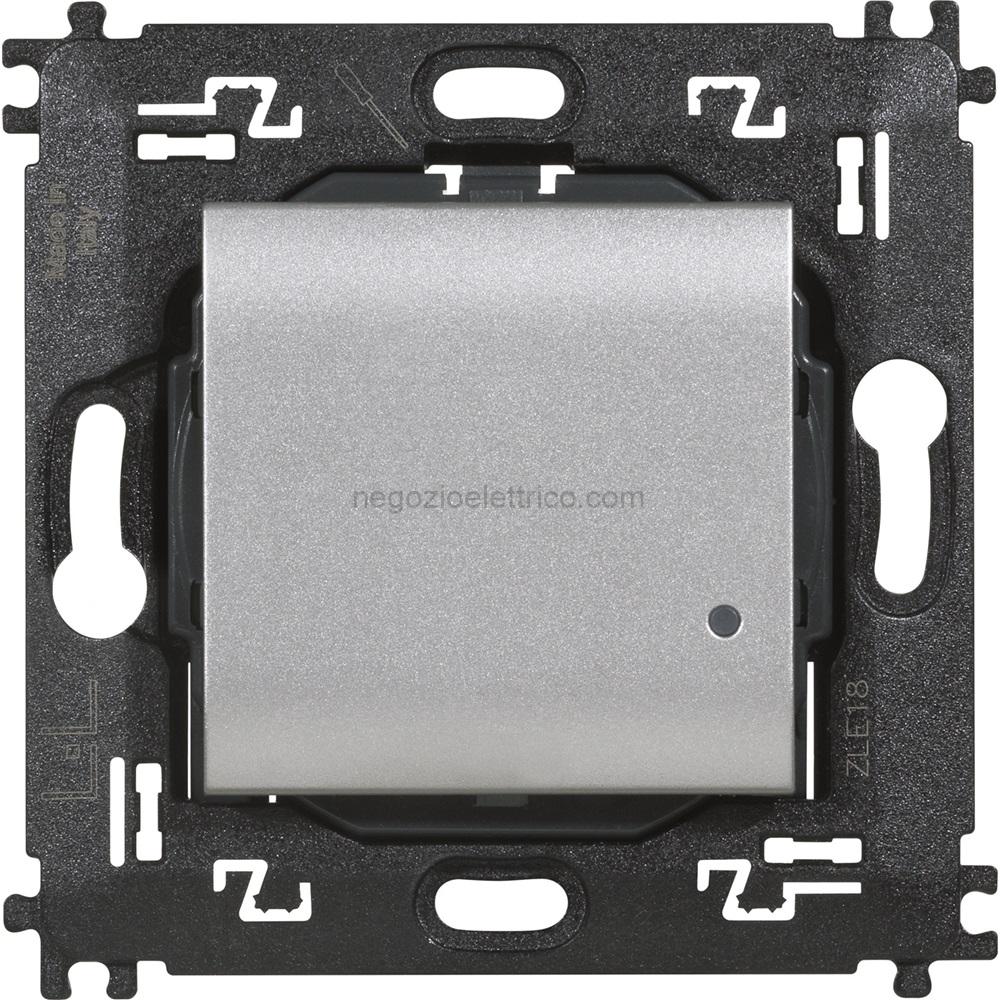 Comando luci wireless. Permette il controllo ON/OFF di uno o più dispositivi connessi per il comando di luci. Installazione superficiale con adesivi riposizionabili (forniti a corredo) o su scatole da incasso. LED integrato per la segnalazione batteria scarica. Alimentazione a batteria 3 V tipo CR2032 (fornita a corredo) con autonomia di 8 anni – 2 moduli.