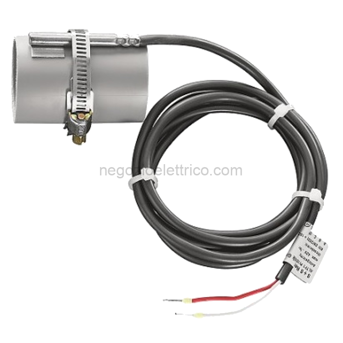 Sonda di temperatura a contatto per la misura di temperatura di tubazioni o contenitori, connessione diretta al modulo art. 20004140, grado di protezione IP65, range di misurazione da -25°C a +105°C, fissaggio tramite fascetta metallica in dotazione.