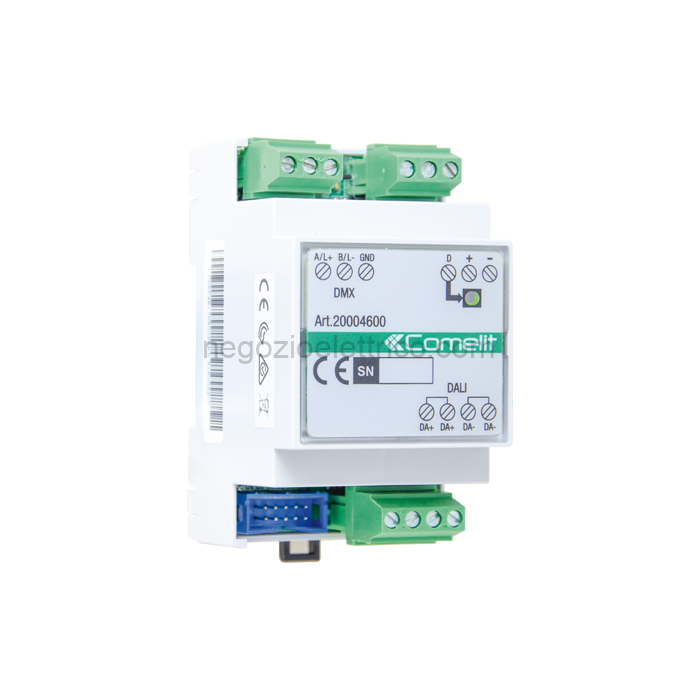 Modulo che permette di interfacciare il BUS SimpleHome con il BUS DALI o BUS DMX. Attraverso l’interfaccia è possibile inviare dei comandi per l’attivazione, la disattivazione o la regolazione di lampade collegate ai sistemi DALI o DMX. E’ possibile comandare o regolare le lampade da pulsanti, Planux Manager, Mini Touch o da WEB browser attraverso il Serial Bridge. Il modulo è in grado di pilotare fino a 64 lampade singole su entrambi i BUS (DALI/DMX) o fino a 16 lampade RGB. Dimensioni: 3 moduli DIN. Assorbimento max 50mA. Il modulo non permette la programmazione o l’alimentazione dei moduli collegati ai BUS DALI o DMX.