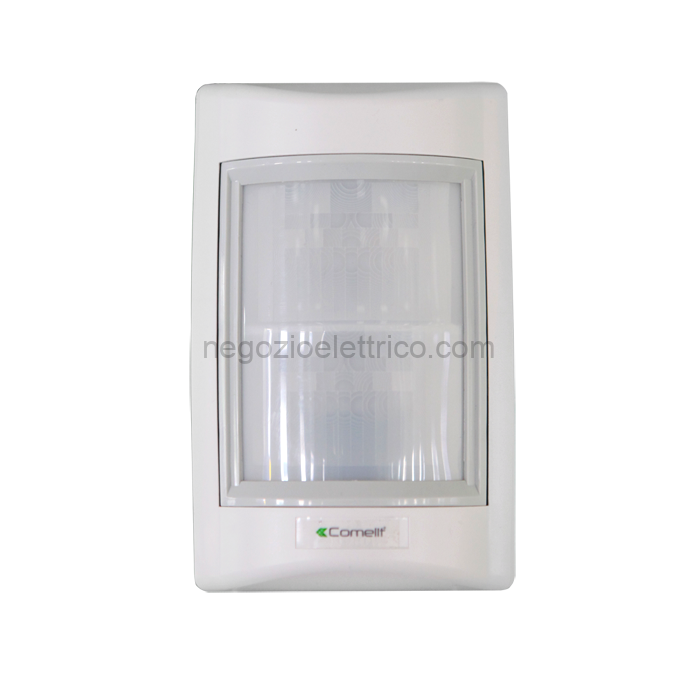 Doppio PIR grandangolo a duplice elemento da esterno in tecnologia ASIC che permette un’analisi accurata per eliminare falsi allarmi, alimentazione da 9.6 a 16 VDC, assorbimento a riposo 8 mA, in allarme 18 mA, portata 18 m, apertura 140°, temperatura di funzionamento da -25 a +55°C, protezione IP 65, uscita allarme e tamper NC.