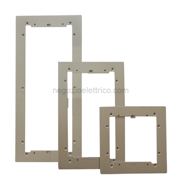Cornice in alluminio naturale anodizzato 4 moduli allineati verticalmente. Dimensioni 149x419x3 mm