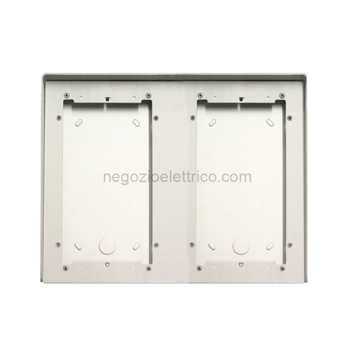 Custodia in alluminio naturale anodizzato, con protezione antipioggia, 4 moduli. Dimensioni (L x H x P): 281x242x85 mm.