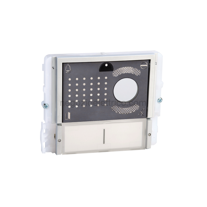 Modulo predisposto per portiere audio/video, con mascherina finitura acciaio inox. Cartellini portanome con illuminazione a led selezionabile tra blu, bianca e spenta. Da completare con il relativo portiere videocitofonico che dipende dal sistema di cablaggio utilizzato. Dimensioni 112×89,5×32 mm.