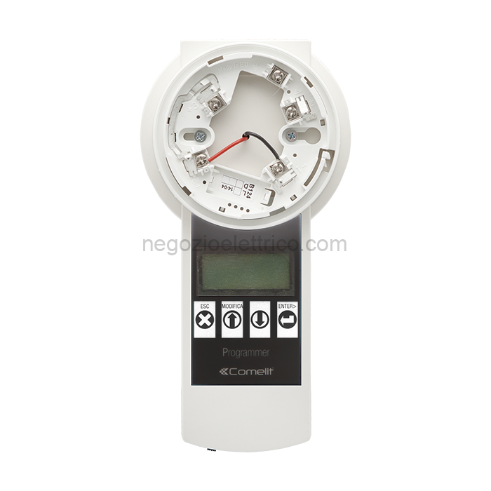 Il programmatore 41SPG000 è lo strumento tramite il quale è possibile assegnare l’indirizzo a tutti i dispositivi collegabili al loop (rivelatori, moduli, punti di allarme manuali e dispositivi di allarme sonori e visuali). Consente di leggere e scrivere gli indirizzi e di impostare i parametri dei rivelatori e dei moduli. Viene fornito con alimentatore 230 VAC, 50Hz/ 1.5-12 VDC, 500mA, 6VA (max.),con spina tripolare per mercato UK e 2 cavi per il collegamento dei moduli e punti di allarmi manuali. È’ alimentabile anche tramite 4 batterie 1,5 V AA. I rivelatori e i dispositivi sonori e visuali sono innestabili direttamente sulla base presente sulla parte superiore del programmatore. Dimensioni: 255x102x65 mm. Peso: 260 g.