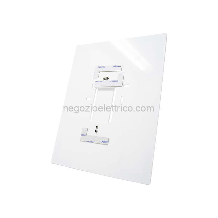 Accessorio per rifinire il montaggio del monitor Mini Vivavoce in caso di sostituzione di videocitofoni Planux, Smart e Icona con montaggio ad incasso o parete. Colore bianco. Dimensioni (L x H x P): 170x220x3mm.