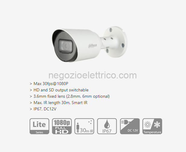 DAHUA HAC-HFW1200T TELECAMERA 2MP HDCVI IR Bullet Camera