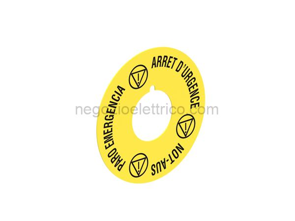 Denominazione Dischi plastici per pulsanti a fungo – ARRET DURGENCE / NOT-AUS / PARO