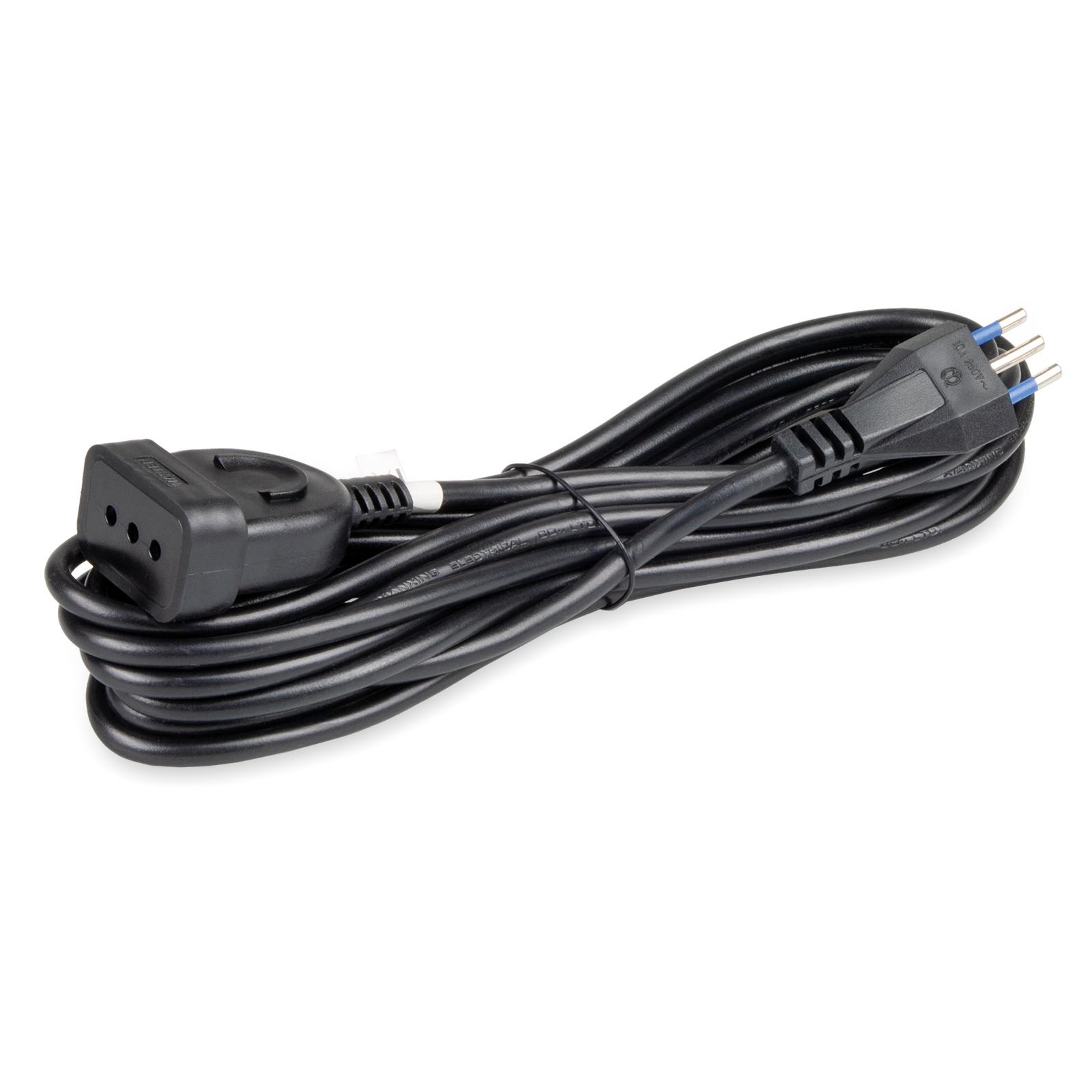 Prolunga lineare 2P+T 10A, cavo 3×0,75 lunghezza 5m, spina S11 e presa sicura P11, colore nero
