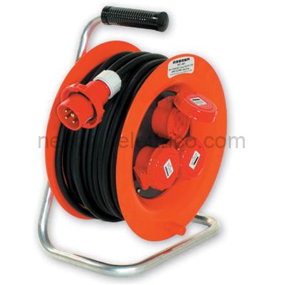 Avvolgicavo industriale 380V IP67 3P+T, cavo H07RNF 4×2,5 lunghezza 30m, Spina CEE 16A, 3 prese CEE 16A, con disgiuntore termico, potenza massima 5500W avvolto/11000W svolto