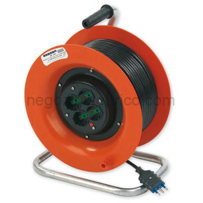 Avvolgicavo industriale 230V IP20 2P+T, cavo H05VVF 3×1,5 lunghezza 40m, Spina S17 16A, 4 prese universali P40, con disgiuntore termico, potenza massima 1800W avvolto/3600W svolto