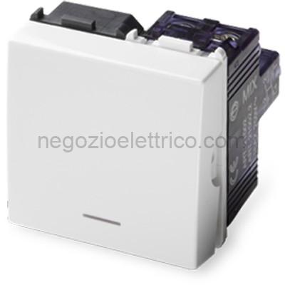 Pulsante MIX NC 1P 16A 250V~, 2 moduli, bianco, predisposto per retroilluminazione su tasto con gemma trasparente