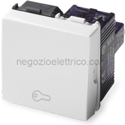 Pulsante MIX NO 1P 16A 250V~ con simbolo Chiave, 2 moduli, bianco, predisposto per retroilluminazione con gemma trasparente.