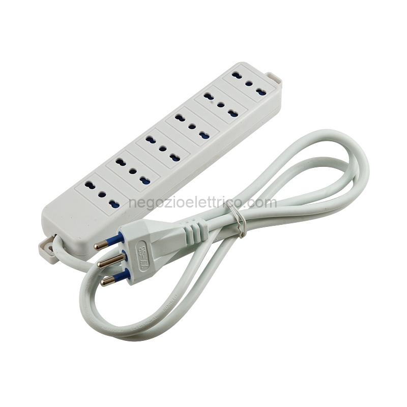 Multipresa bianca a 6 uscite P17/11 “bivalenti” 16A con sicurezza, spina S17 16A, cavo 1,2m sez.3x1mmq