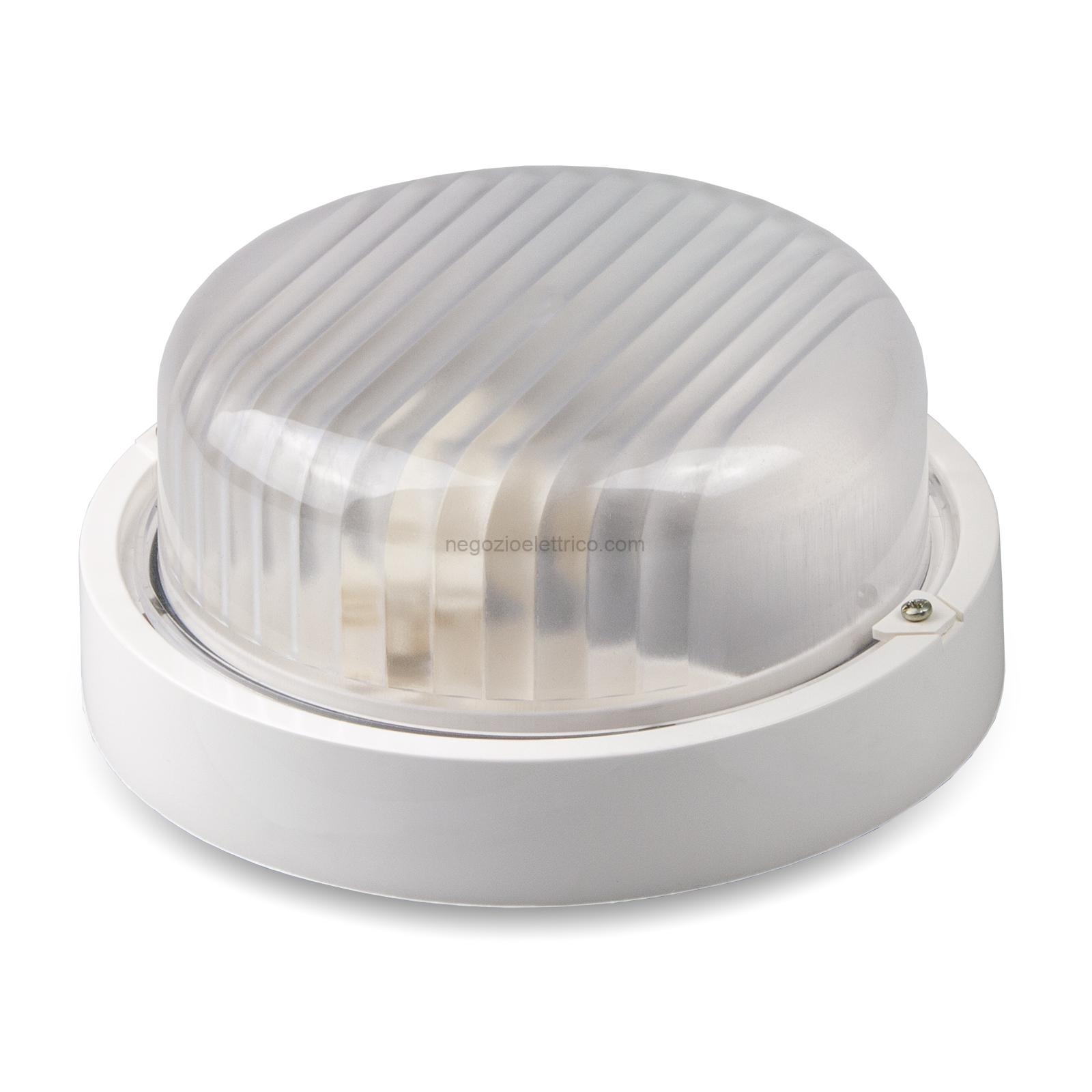 Plafoniera rotonda in tecnopolimero con schermo in policarbonato trasparente con attacco E27 per lampade alogene/CFL (max 60W) o LED (max 15W), grado di protezione IP40, colore bianco