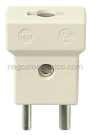 Spina polarizzata 2P 6 A 24 V (SELV), uscita cavo assiale, con serracavo, avorio. 1 spinotto ø 3 mm e 1 spinotto ø 4 mm interasse 12,4 mm. Per prese 16301, 14331, 08159, 10159
