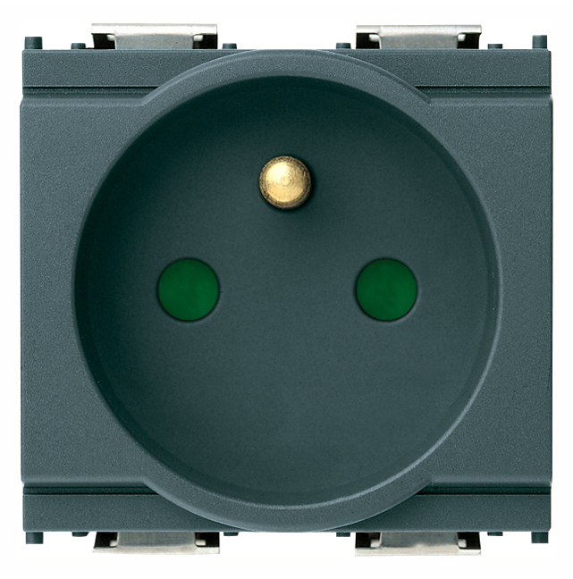 Presa SICURY 2P+T 16 A 250 V~, standard francese, grigio – 2 moduli