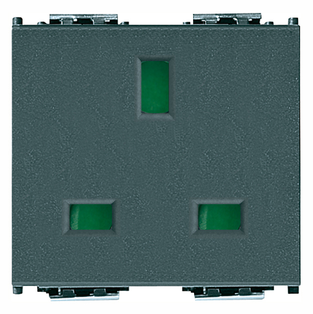 Presa SICURY 2P+T 13 A 250 V~ standard inglese, grigio – 2 moduli