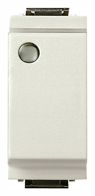 Deviatore 1P 16 AX 250 V~, luminoso, per unità di segnalazione, bianco – modulo ridotto. Fornito senza unità di segnalazione. Max 200 W per lampade con alimentatore integrato (IEC 60669-1:2017)