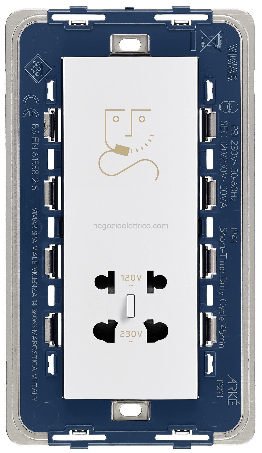 Presa per rasoi con trasformatore di isolamento 20 VA, alimentazione 230 V~ 50-