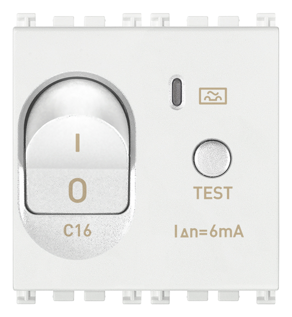 Interruttore automatico magnetotermico differenziale 1P+N C 16, 120-230 V~ 50-60 Hz, IΔn 6 mA, p.i. 3000 A, bianco – 2 moduli