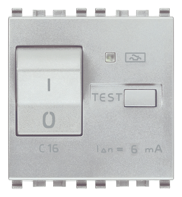 Interruttore automatico magnetotermico differenziale 1P+N C 16, 120-230 V~ 50-60 Hz, IΔn 6 mA, p.i. 3000 A, Next – 2 moduli