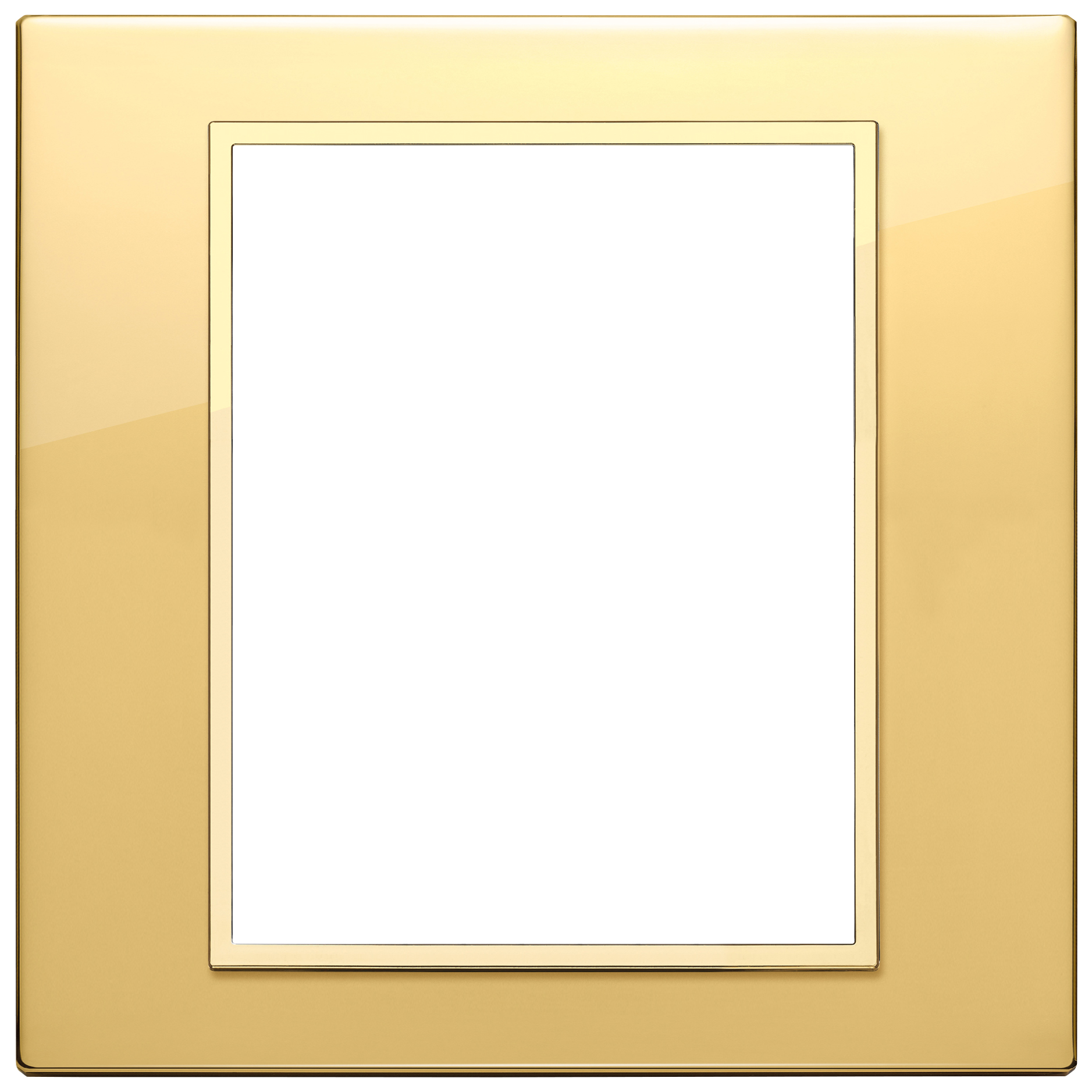 Placca 8 moduli (4+4), alluminio nobilitato e cornice dorata, oro totale lucido