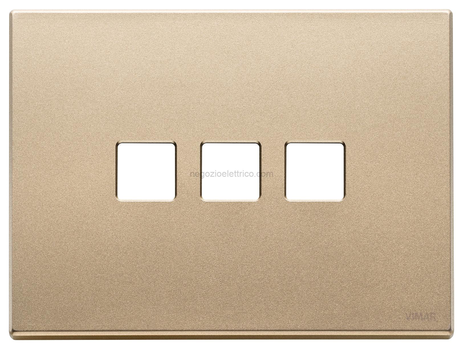 Placca 3 moduli per tre comandi Flat, metallo, oro satinato