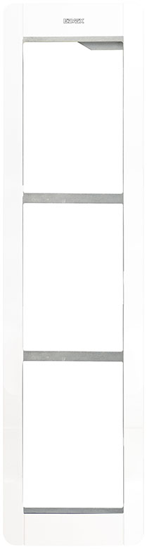 Supporto e placca 3 moduli Pixel, bianco. Dimensioni 99,5×391 mm